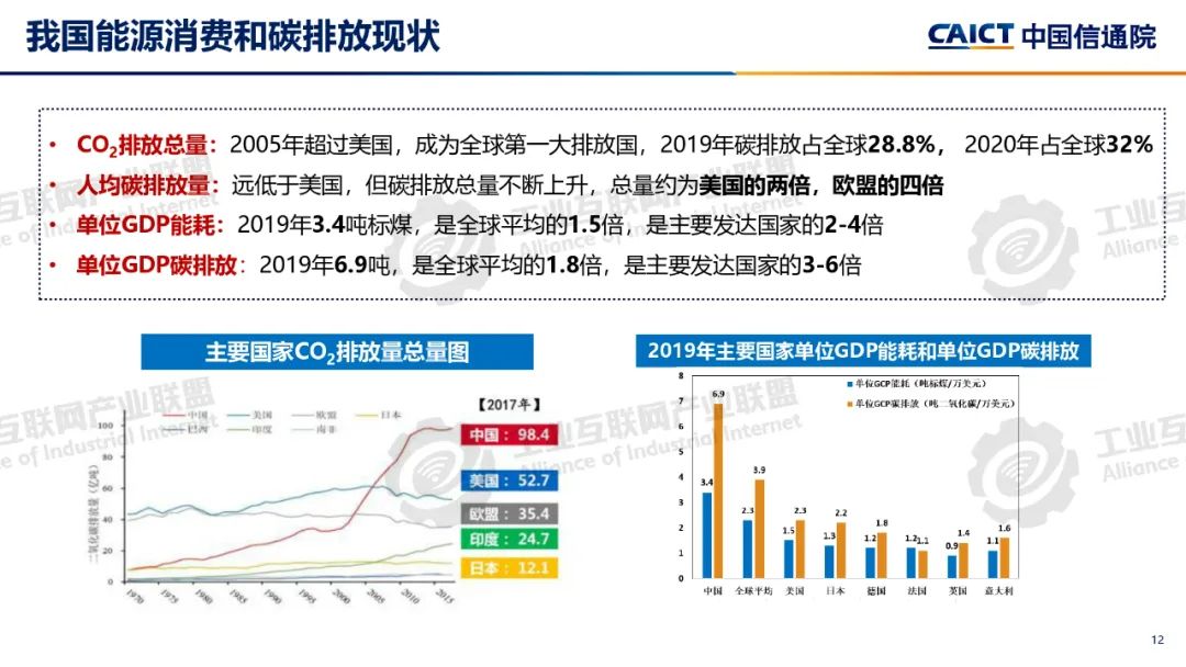 本期為您介紹由中國信息通信研究院泰爾終端實驗室副總工盧春陽分享的《碳達峰碳中和基礎知識和政策解讀》。盧春陽講解了碳達峰碳中和的科學內涵、經濟內涵和重要意義,分析了國內外能源消費結構和我國碳排放的現狀,以及碳達峰碳中和面臨的挑戰,解讀了我國碳達峰碳中和“1+N”政策體系,重點講解了《2030年前碳達峰行動方案》具體重點行動以及工業、建材和有色行業碳達峰實施方案的主要內容。