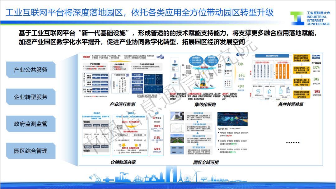 此外,“典型場景”中還包括產業運行監測、集約化采購、備件共營共享、倉儲物流共享、園區全域可視等重點應用場景。