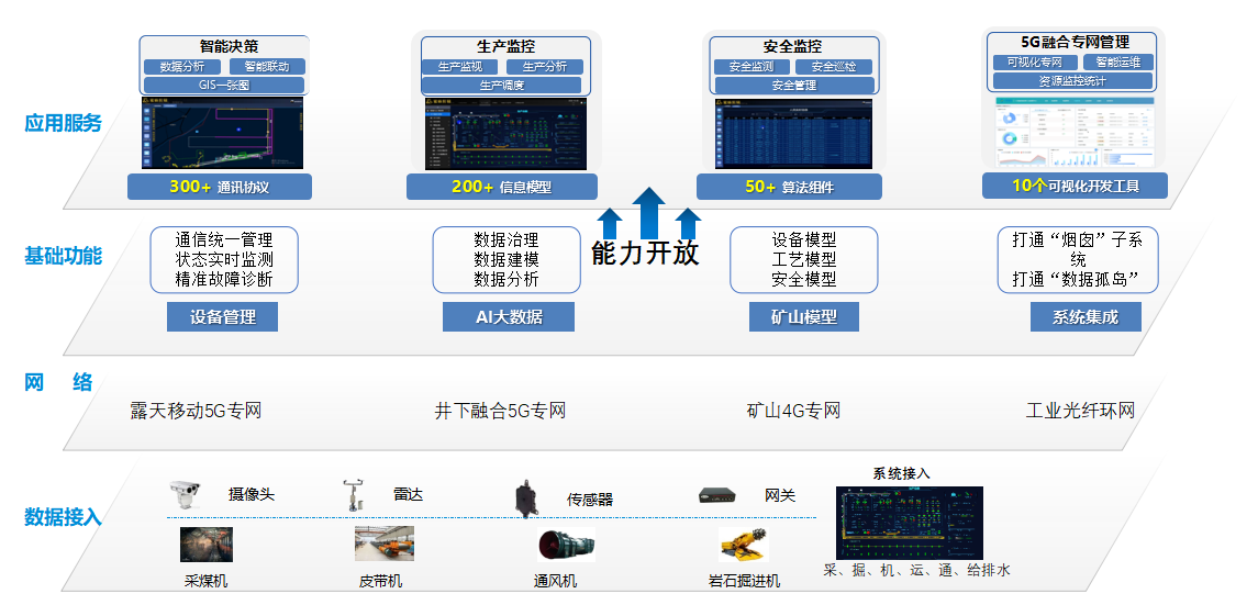 中國移動礦山工業互聯網平臺通過對礦山“人、機、環”數據進行精準化采集、網絡化傳輸、規范化集成,實現可視化展現、自動化操作和智能化服務的礦山智慧體。