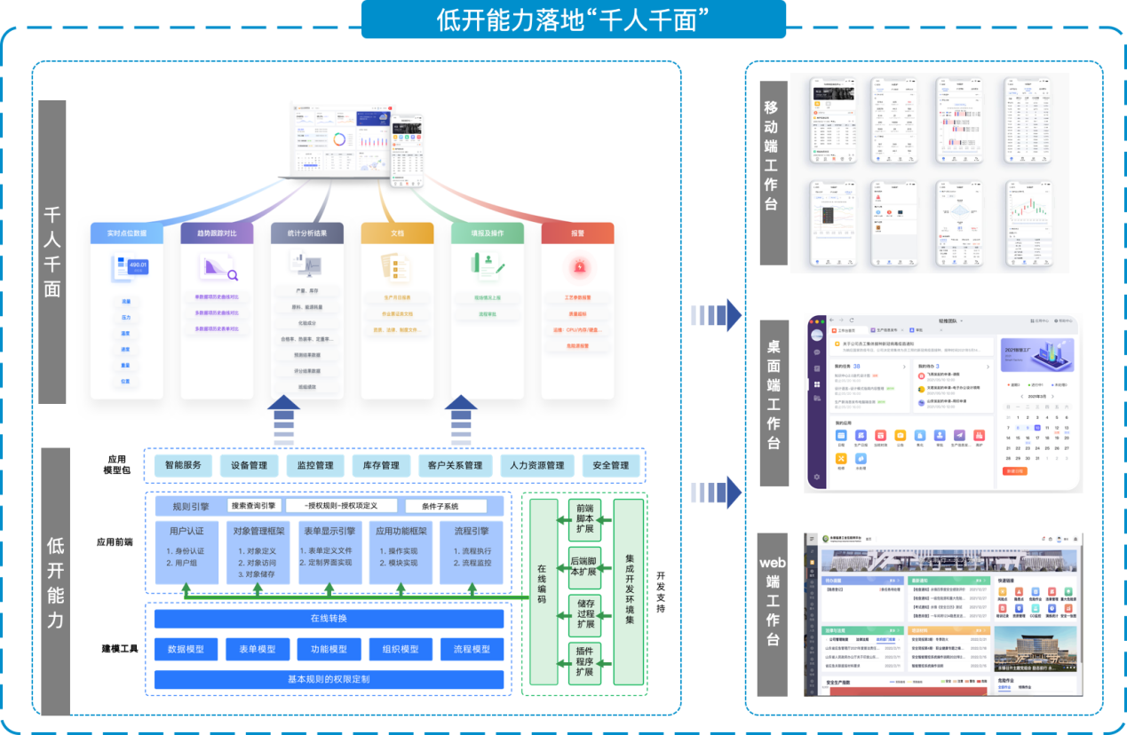 千人千面是水土云工業(yè)互聯(lián)網(wǎng)平臺(tái)針對(duì)流程工業(yè)企業(yè)流程長(zhǎng)、機(jī)理復(fù)雜、工序崗位特點(diǎn)各異等特點(diǎn)構(gòu)建的工業(yè)敏捷低開解決方案。通過組件選擇、拖拽、配置完成自定義業(yè)務(wù)的快速搭建,開放連接其他企業(yè)應(yīng)用,為工業(yè)應(yīng)用提供一種全新的高生產(chǎn)力開發(fā)范式。