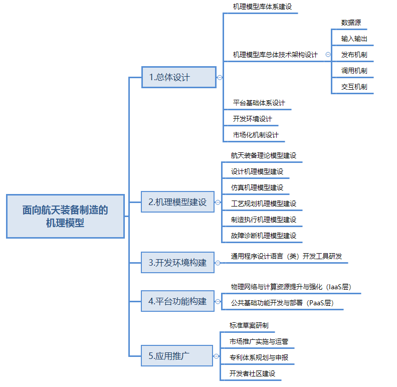 本項目同時參與申請了《國家工業互聯網創新發展工程 》的工業機理模型庫項目,創新性的階段研制出包含航天裝備理論模型、設計機理模型、仿真機理模型、工藝規劃機理模型、制造執行機理模型、故障診斷機理模型在內的航天裝備工業機理模型庫,同時建立與之適應的包括開發環境在內的工業互聯網平臺,最終實現機理模型庫在航天領域的成功應用與推廣。