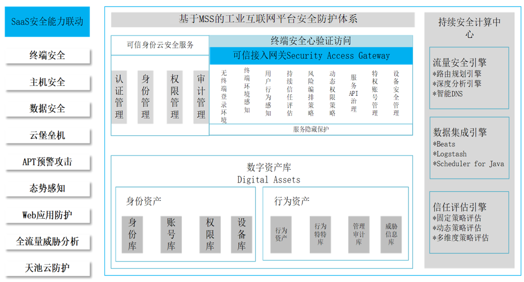 通過把安全運營SaaS化、安全防護SaaS化、安全管理SaaS化,基于云計算、工業互聯網、大數據等核心安全技術,建立一套能夠實現安全能力可擴展、有彈性、易維護的SaaS化立體縱深安全防御體系,實現對云安全能力的SaaS化賦能。