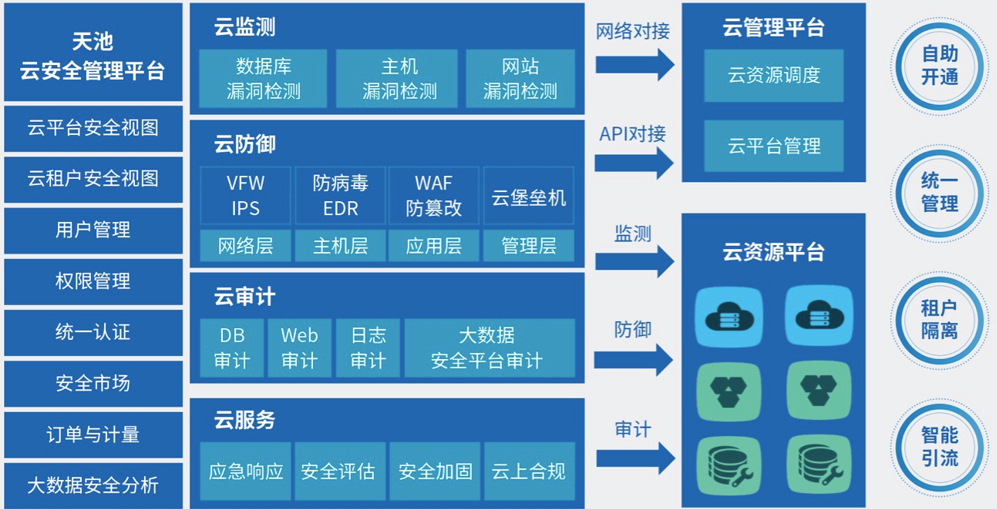 對各種安全能力集中管理調度,結合大數據分析,為云租戶提供安全視圖,可對云資源實現整體安全感知。
