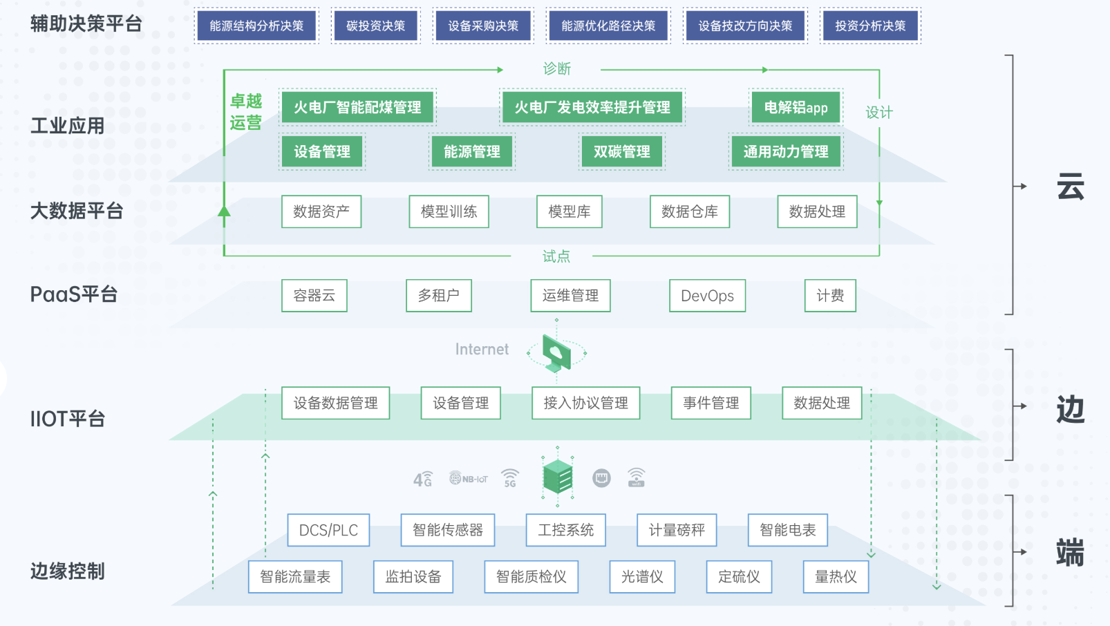 本解決方案基于Geega(際嘉)工業互聯網平臺和吉利百礦集團有限公司(下稱“百礦集團”)完善的鋁產業鏈應用場景,提出針對鋁產業全生命周期節能降碳的數字化轉型解決方案。通過構建一個工業互聯網數字化底座,集成通用動力管理、能源管理、雙碳管理、設備管理、火電廠智能配煤管理、火電廠發電效率提升管理、電解鋁APP等工業APP,實現能耗量及能耗橋的實時在線監控,并以此為輸入,結合機理模型,實現智能決策路徑,形成一整套的面向鋁產業鏈數字化運營及能耗優化的解決方案,優化能源配置,降低能耗及二氧化碳排放,助力鋁行業雙碳目標實現。