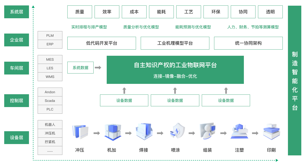 工業4.0時代背景下,信息化與工業化深度融合成為爭奪全球競爭優勢的關鍵。各國紛紛在信息技術領域發力,促進新工業革命在全球迅速興起。制造企業在生產制造、質量管理、物流管理等多個環節存在生產成本高、效率低、能耗大等痛點問題,促使制造企業逐步由規模化向綠色化、數字化轉型,并催生出信息經濟、知識經濟等一批新的商業生態。