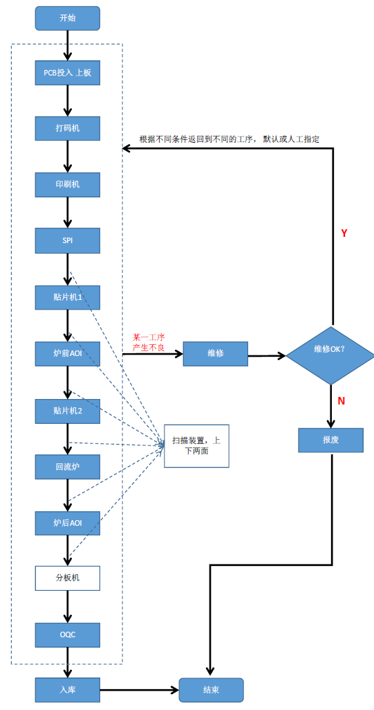 在生產(chǎn)過程管理的MES系統(tǒng)中,實(shí)現(xiàn)在SMT貼片生產(chǎn)過程的PCB掃碼、物料上料以及生產(chǎn)設(shè)備的數(shù)據(jù)采集和關(guān)聯(lián),以及生產(chǎn)過程的物料使用情況追溯可視。