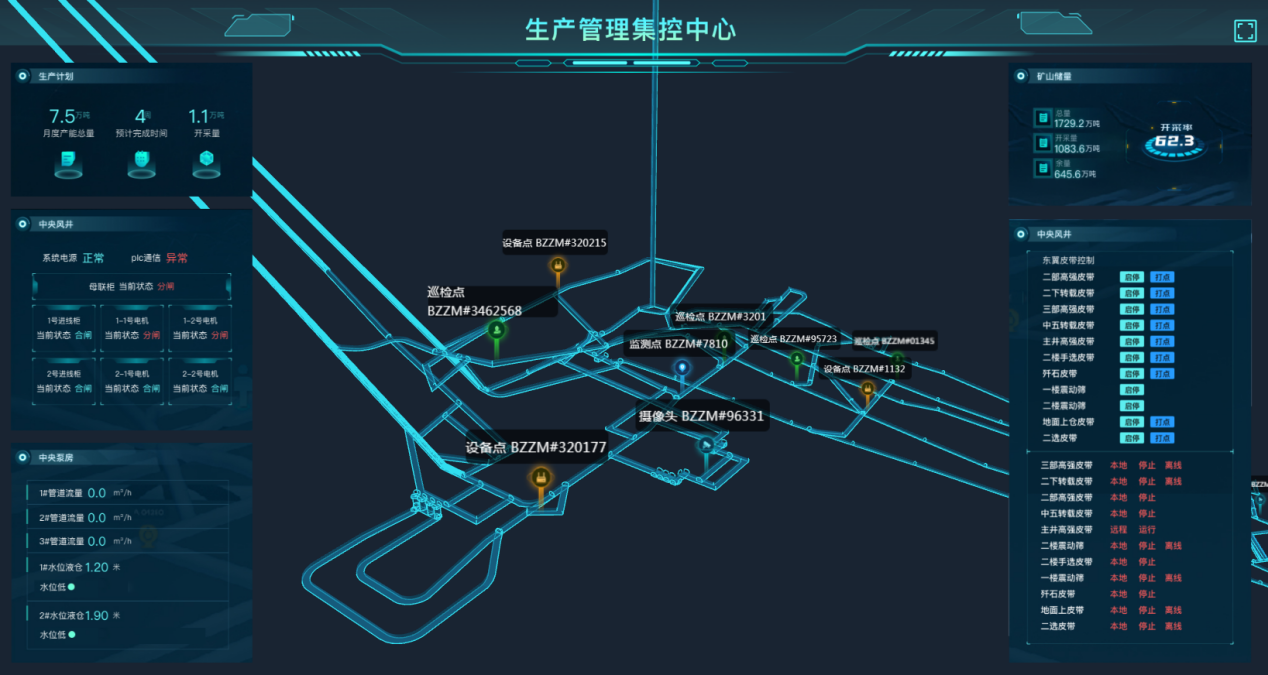 首頁(yè) WebGis 地圖不只是三維設(shè)計(jì)初級(jí)階段的可視化模型,而是載有各類(lèi)信息的數(shù)字綜合體,包括實(shí)時(shí)生產(chǎn)信息、車(chē)輛運(yùn)行軌跡、采面信息、視頻監(jiān)控、邊坡預(yù)警信息等,實(shí)現(xiàn)了生產(chǎn)過(guò)程高度集成化的一張圖管理。
