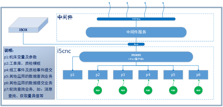 采用iport協(xié)議進行app與上層服務間的數(shù)據(jù)通信;MES下發(fā)生產(chǎn)任務給目標設備,經(jīng)過中間件將數(shù)據(jù)進行加密,并推送到該設備連接的iBOX,由BOX推送到指定設備,設備系統(tǒng)內(nèi)的工單管理app將數(shù)據(jù)解密后顯示。
