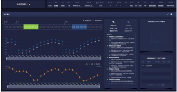 開展設備運行現(xiàn)場精益運維管理,對現(xiàn)場運維期的業(yè)務進行細化,將數(shù)據(jù)分析、資產(chǎn)管理、故障預測和診斷、設備KPI管理、物資保障和作業(yè)窗口等集中在一起,作為基礎數(shù)據(jù),結(jié)合現(xiàn)場運維策略,將現(xiàn)場工作任務進行綜合管理,降低設備運維成本(減小備品備件損失和更換頻次)、降低設備故障頻次和停機時間,提高設備可利用率及收益。其中,重點實現(xiàn)機組故障自診斷分析,推送合適作業(yè)窗口、備件位置、數(shù)量信息及故障解決方案;實現(xiàn)對現(xiàn)場KPI的管理,給現(xiàn)場運維計劃提供數(shù)據(jù)支撐。以上信息均以工單的形式下發(fā)至設備現(xiàn)場,解決了現(xiàn)有的工單不能自動創(chuàng)建、備件位置和數(shù)量查詢繁瑣等問題,改善了故障處理效率,降低了設備損失及運維成本。