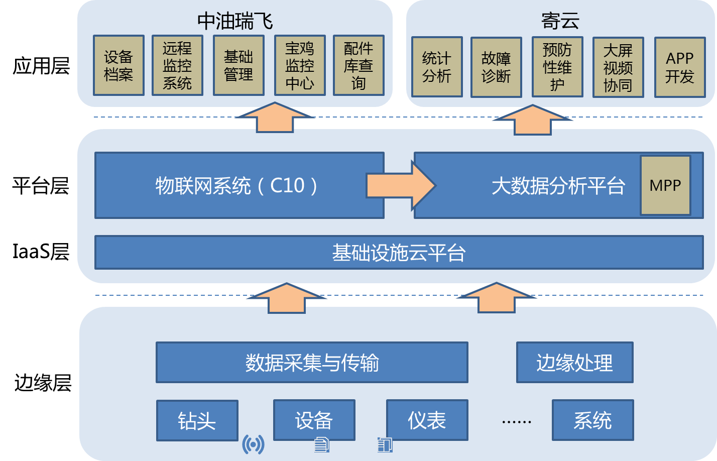 石油生產的連續性生產要求對石油裝備的非計劃停機提出了非常高的要求,需要通過各種實時監控、定期的計劃性維修和不定期的視情維修,對設備進行有效的維護,避免由于設備的無計劃停機造成巨大的損失。由于鉆井平臺的復雜設備,如何做一個邊緣監測方案,把所有的數據都收集起來統一分析,而不是像原來那樣,需要很多專家到現場逐點查看,這成為設備供應急需解決的首要問題之一。