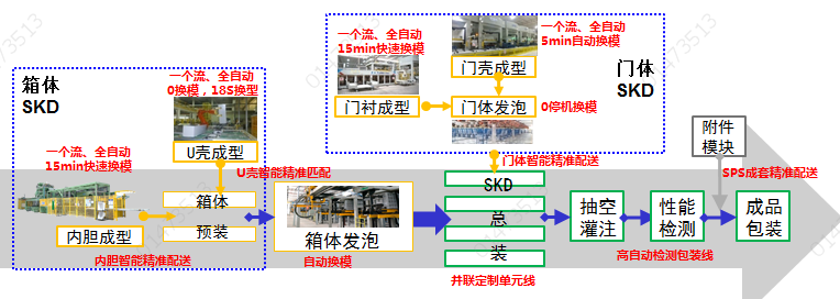 沈陽冰箱柔性化生產(chǎn)的目標是滿足批量為“1”的定制定單高效生產(chǎn),具體開展方式通過以下四個方面: