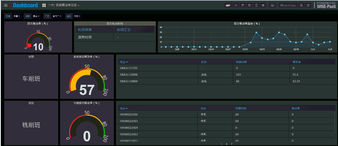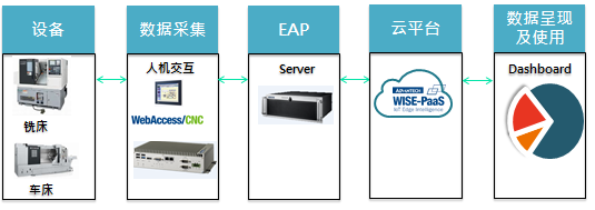 從底層數據采集到數據邊緣運算,并通過WisePaas Dashboard呈現,實現數據的可視化。初步擬定以車床車間和銑床車間為一期工程,提供開放式系統平臺,全面實現設備聯網、數據采集,數位化智能管理等預期。在一期工程完成后,借助研華方案強大的可擴展性,在系統架構上可彈性實現其他廠區車間的工程布建。