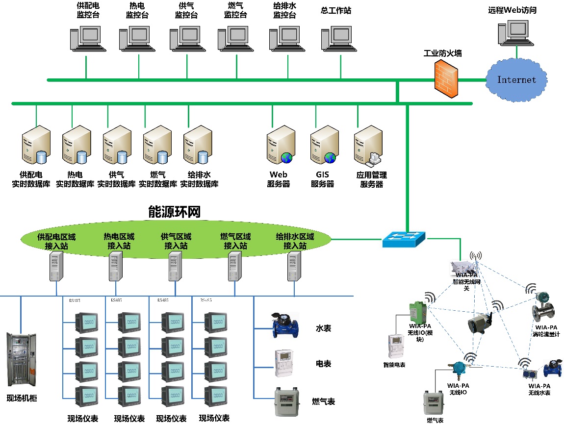 ? 工廠部署WIA-PA網(wǎng)絡(luò),實(shí)現(xiàn)廠內(nèi)標(biāo)準(zhǔn)化工業(yè)物聯(lián)網(wǎng)全覆蓋,用于現(xiàn)場能源儀表數(shù)據(jù)的全面采集。