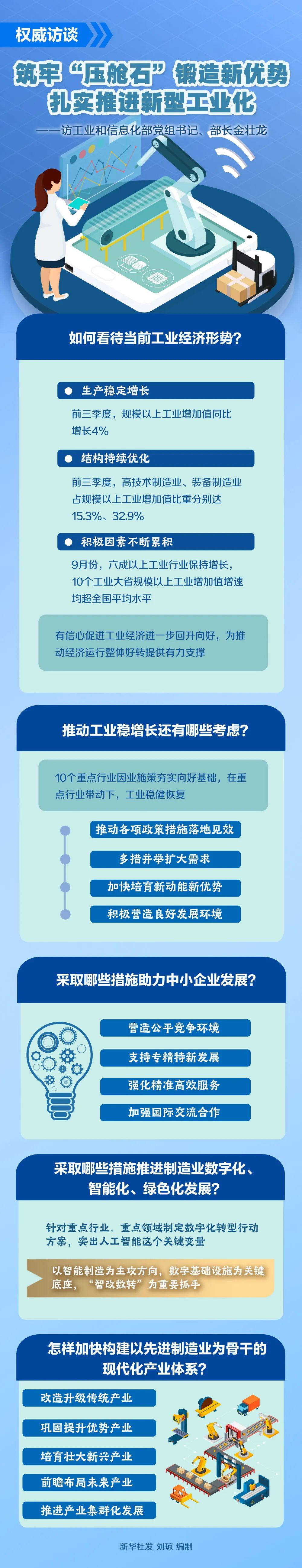 問:將采取哪些措施推進(jìn)制造業(yè)數(shù)字化、智能化、綠色化發(fā)展?怎樣加快構(gòu)建以先進(jìn)制造業(yè)為骨干的現(xiàn)代化產(chǎn)業(yè)體系?
