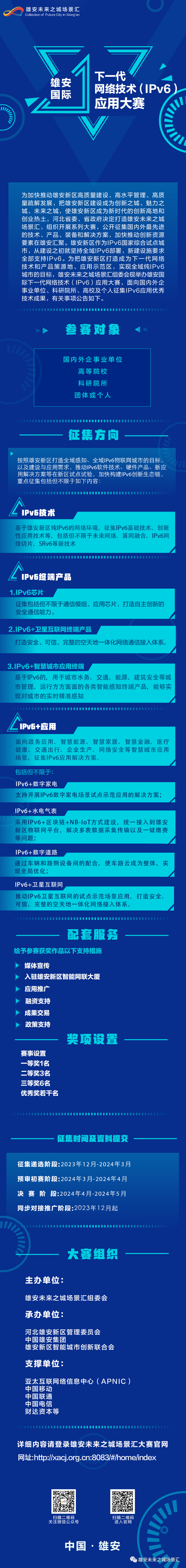 征集丨雄安國際下一代網絡技術(IPv6)應用大賽