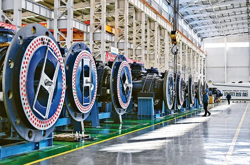 綠色低碳是新型工業(yè)化的生態(tài)底色。近年來,內(nèi)蒙古自治區(qū)錫林郭勒盟依托風(fēng)、光資源優(yōu)勢,大力發(fā)展風(fēng)電裝備等新能源制造產(chǎn)業(yè)。圖為2024年5月15日,工人在錫林郭勒盟明陽新能源有限公司總裝車間作業(yè)。 新華社記者 李志鵬/攝