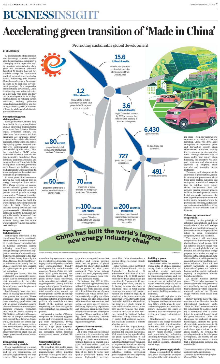 《中國日報(bào)》刊發(fā)李樂成英文署名文章:加快中國制造綠色低碳轉(zhuǎn)型 促進(jìn)全球可持續(xù)發(fā)展