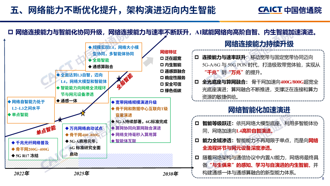 五、網絡能力不斷優化提升,架構演進邁向內生智能