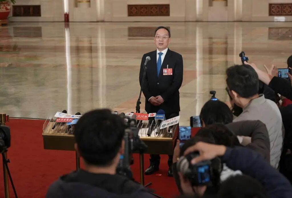 3月5日,第十四屆全國人民代表大會第四次會議首場“部長通道”集中采訪活動在北京人民大會堂舉行。這是工業(yè)和信息化部部長李樂成接受媒體采訪。新華社記者 王曦 攝