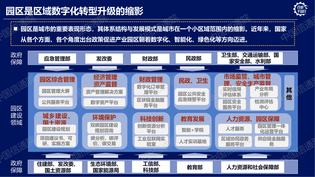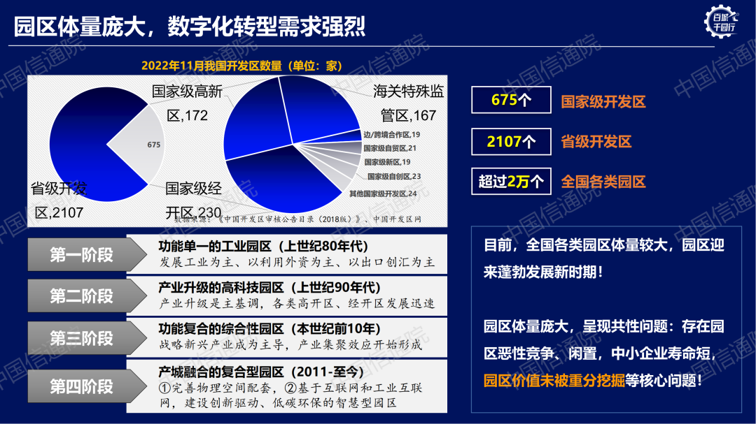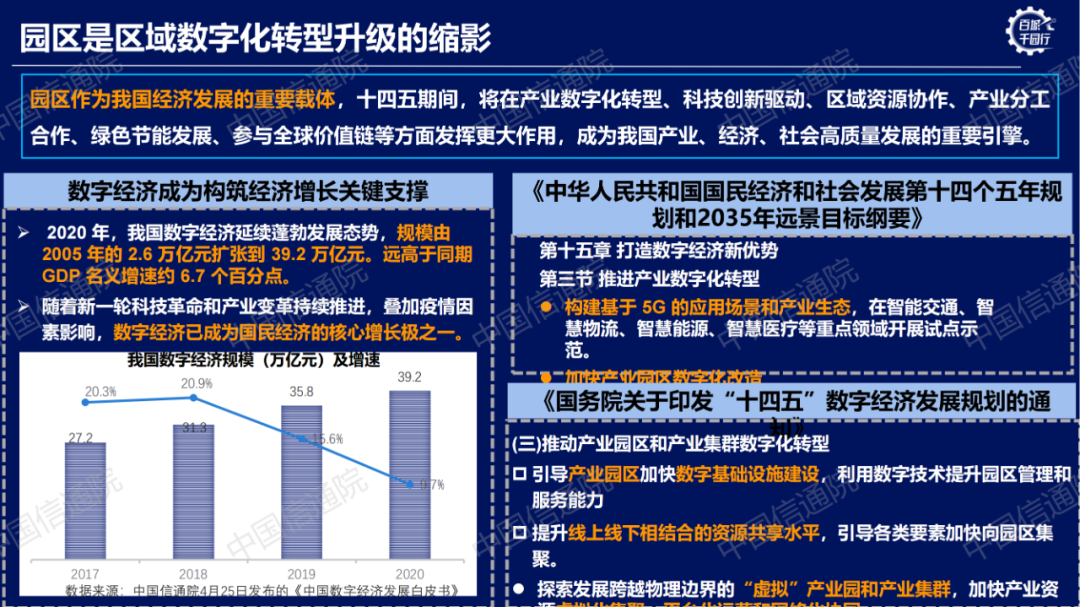“園區(qū)經(jīng)濟”是改革開放以來中國經(jīng)濟發(fā)展的重要經(jīng)驗,不僅成為了中國經(jīng)濟的載體和平臺,也成為區(qū)域經(jīng)濟增長的快速增長極。2022年2月,國務(wù)院印發(fā)《“十四五”數(shù)字經(jīng)濟發(fā)展規(guī)劃》,提出要推動園區(qū)數(shù)字化轉(zhuǎn)型,引導(dǎo)產(chǎn)業(yè)園區(qū)加快數(shù)字基礎(chǔ)設(shè)施建設(shè),探索發(fā)展跨越物理邊界的“虛擬”產(chǎn)業(yè)園和產(chǎn)業(yè)集群。隨著工業(yè)互聯(lián)網(wǎng)的快速發(fā)展和深化應(yīng)用,工業(yè)互聯(lián)網(wǎng)園區(qū)正在加速崛起,工業(yè)園區(qū)、高新技術(shù)產(chǎn)業(yè)開發(fā)區(qū)、工業(yè)化產(chǎn)業(yè)示范基地及各種產(chǎn)業(yè)集聚區(qū)正在加速引入工業(yè)互聯(lián)網(wǎng)技術(shù)和理念進行建設(shè)、改造或升級。