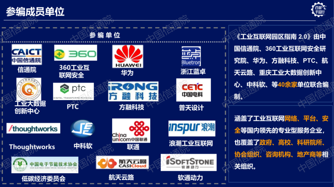 為有效指導(dǎo)工業(yè)互聯(lián)網(wǎng)園區(qū)的建設(shè)、運營與發(fā)展,工業(yè)互聯(lián)網(wǎng)產(chǎn)業(yè)聯(lián)盟于2020年4月發(fā)布《工業(yè)互聯(lián)網(wǎng)園區(qū)指南》,為產(chǎn)業(yè)界提供了園區(qū)轉(zhuǎn)型升級的參考和借鑒。隨著國家和各地十四五規(guī)劃的相繼出臺,以及圍繞做強做優(yōu)做大數(shù)字經(jīng)濟、促進數(shù)字化綠色化協(xié)同轉(zhuǎn)型發(fā)展、加速中小企業(yè)特色產(chǎn)業(yè)集群發(fā)展等政策措施的陸續(xù)發(fā)布,工業(yè)互聯(lián)網(wǎng)園區(qū)發(fā)展進一步提速,并呈現(xiàn)綠色低碳、虛實融合等新發(fā)展趨勢。在此背景下,為幫助產(chǎn)業(yè)界更加充分了解園區(qū)新的發(fā)展趨勢,更好地開展工業(yè)互聯(lián)網(wǎng)園區(qū)改造和建設(shè),工業(yè)互聯(lián)網(wǎng)產(chǎn)業(yè)聯(lián)盟在工業(yè)和信息化部的指導(dǎo)下,編制完成了《工業(yè)互聯(lián)網(wǎng)園區(qū)指南(2.0版本)》(以下簡稱指南(2.0版本))。