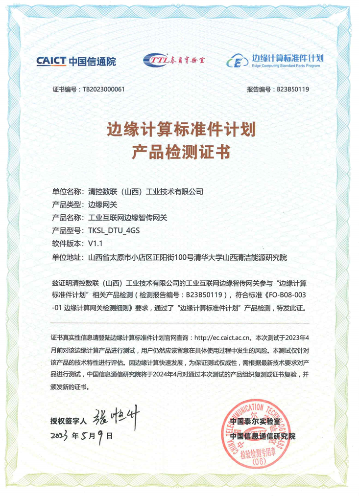 經(jīng)過(guò)中國(guó)信息通信研究院集中測(cè)試,清控?cái)?shù)聯(lián)(山西)工業(yè)技術(shù)有限公司自主研發(fā)的工業(yè)互聯(lián)網(wǎng)邊緣智傳網(wǎng)關(guān)順利通過(guò)“邊緣計(jì)算標(biāo)準(zhǔn)件計(jì)劃”產(chǎn)品測(cè)試,并且在工廠能源、數(shù)字農(nóng)業(yè)等領(lǐng)域?qū)嶋H應(yīng)用部署和持續(xù)穩(wěn)定運(yùn)行,助力各行業(yè)企業(yè)應(yīng)用升級(jí),推動(dòng)數(shù)字化建設(shè)落地。