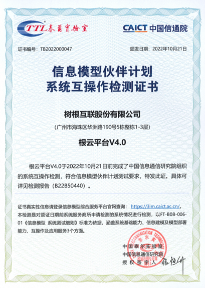 根云平臺V4.0通過信息模型伙伴計劃系統(tǒng)互操作檢測