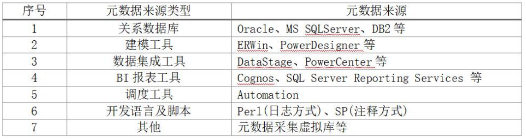 元數據的常見來源如下表: