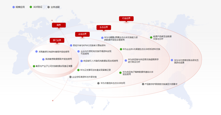 華為公司業(yè)務(wù)分布在170多個國家和地區(qū),隨著數(shù)字化的發(fā)展,華為需要通過數(shù)據(jù)的高效聯(lián)接、跨域使用控制、安全流通支撐復(fù)雜業(yè)務(wù)的全球協(xié)同。基于此,華為希望充分融合企業(yè)內(nèi)外部數(shù)據(jù),基于清算促進(jìn)數(shù)據(jù)價值的量化和分配,形成數(shù)據(jù)產(chǎn)生、交換、消費的良性循環(huán),充分釋放數(shù)據(jù)價值。