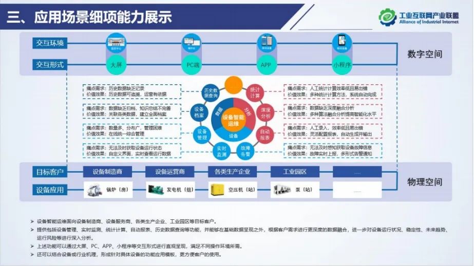 客群360度場(chǎng)景圖示例:深圳智物聯(lián)以客群360度場(chǎng)景圖創(chuàng)新設(shè)計(jì)的設(shè)備智能運(yùn)維的場(chǎng)景圖,通過數(shù)實(shí)融合(上面是數(shù)字空間,下面是物理空間),展示可運(yùn)維設(shè)備的類型、載體和方式。加速客戶方理解其產(chǎn)品和服務(wù)。