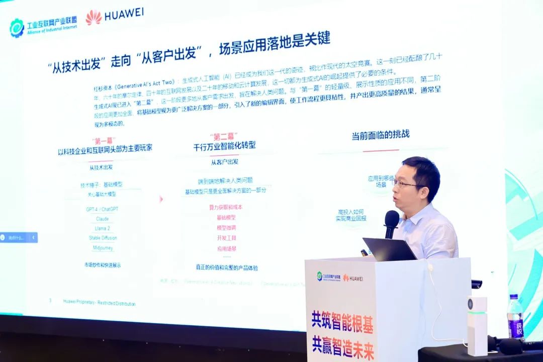 隨后,華為ICT新機(jī)會(huì)孵化部部長(zhǎng)周小紅女士發(fā)表開場(chǎng)致辭。她闡述了AI大模型落地工業(yè)在數(shù)據(jù)、算力、算法上的三個(gè)挑戰(zhàn),并提出四方面的解決之道:一是架構(gòu)先行,分層解耦;二是構(gòu)建計(jì)算、網(wǎng)絡(luò)、存儲(chǔ)全面協(xié)同的先進(jìn)基礎(chǔ)設(shè)施;三是平臺(tái)開放,生態(tài)共贏;四是場(chǎng)景驅(qū)動(dòng),價(jià)值閉環(huán)。中國(guó)作為世界第一工業(yè)大國(guó),有豐富的應(yīng)用場(chǎng)景和數(shù)據(jù)資源,周小紅女士希望產(chǎn)業(yè)各方,攜手共筑智能根基,共贏智造未來!