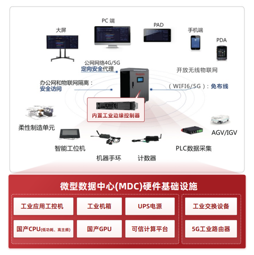 為加快賦能中小企業(yè)“智改數(shù)轉(zhuǎn)”,曙光網(wǎng)絡(luò)基于GWR-3230H工業(yè)邊緣控制器,打造曙光工業(yè)智能一體機(jī)解決方案,將工業(yè)邊緣控制器、工業(yè)交換機(jī)/路由器、觸摸大屏、UPS電源、各類傳感器等硬件,以及MES、SCADA、PLM等工業(yè)軟件全部集成在一個(gè)工業(yè)機(jī)柜當(dāng)中,用工業(yè)安全邊緣云構(gòu)建本地化智能制造平臺(tái)。