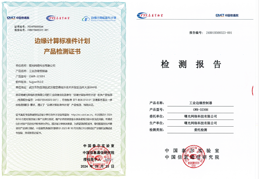 “邊緣計(jì)算標(biāo)準(zhǔn)件計(jì)劃”檢測(cè)證書與檢測(cè)報(bào)告
