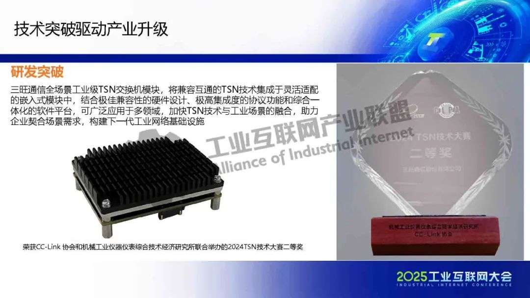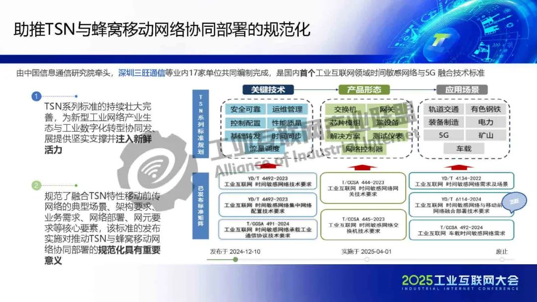 5月23日,在2025工業(yè)互聯(lián)網(wǎng)大會(huì)“新型工業(yè)網(wǎng)絡(luò)與“5G+工業(yè)互聯(lián)網(wǎng)”協(xié)同創(chuàng)新發(fā)展專(zhuān)題活動(dòng)”上,深圳市三旺通信股份有限公司智能制造BU總經(jīng)理張波發(fā)表了《TSN技術(shù)賦能新型工業(yè)網(wǎng)絡(luò)》的主題演講。