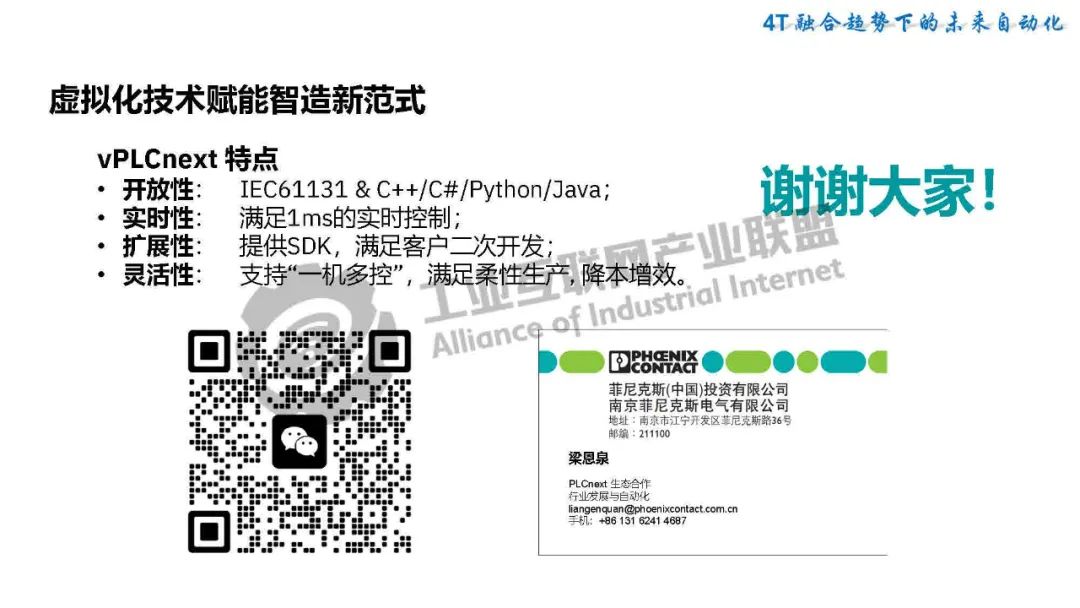5月21日,在2025工業互聯網大會“工業互聯網數智融合創新發展專題活動”上,菲尼克斯電氣中國公司PLCnext軟件業務與生態經理梁恩泉發表了《虛擬控制技術賦能智造新范式》的主題演講。