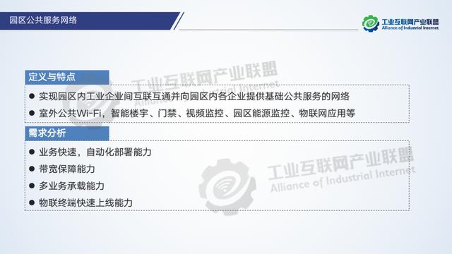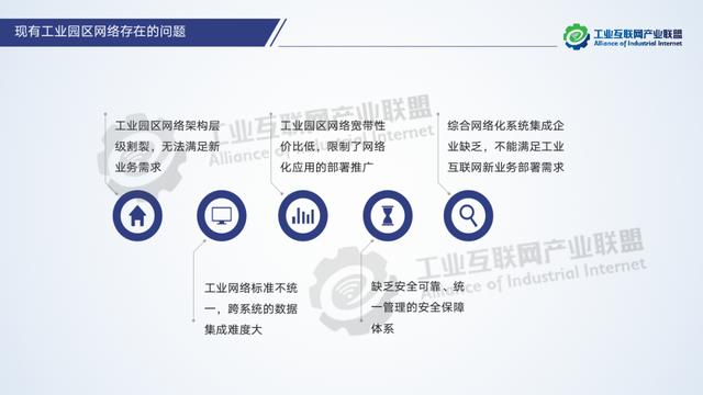 工業互聯網園區網絡是指在工業互聯網園區內部部署,實現園區企業設備互聯和信息互通的網絡基礎設施,是由廠區到園區、由生產到管理的綜合性基礎網絡體系。當前現有的園區網絡存在網絡架構層級割裂、寬帶性價比低、缺乏系統繼承性企業、標準不統一、缺乏安全保障體系等問題,園區網絡未來的目標是打造新“三通一平”工業園區,即通話、通網、通云、統一服務平臺:建設低延時、高可靠、廣覆蓋的工業互聯網網絡基礎設施;集合網絡、軟件、物聯網技術和服務,實現數據在工業各個環節的無縫傳遞;支撐形成實時感知、協同交互、智能反饋的生產模式;提升園區產業服務水平,提高服務的明確性、高效性、靈活性;建立開放、融合、創新的網絡服務體系。