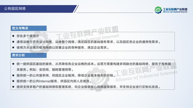 工業園區作為工業企業集聚區,為工業企業提供了大量基礎設施和公共服務。隨著工業互聯網的發展,傳統工業園區的轉型已成為未來發展的必然方向。目前我國工業互聯網網絡體系正在全方位推進中,工業園區網絡作為企業外網和企業內網之間的紐帶,是工業互聯網的重要基礎設施,是工業互聯網網絡的重要組成部分。隨著工業互聯網業務需求的日益豐富,園區網絡的能力提升成為推進工業互聯網網絡化改造與應用中的關鍵環節。