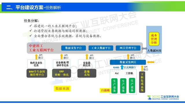 8月31日上午,在2020工業(yè)互聯(lián)網(wǎng)大會“工業(yè)互聯(lián)網(wǎng)成果發(fā)布”主題論壇上,中建科工集團有限公司信息化部總經(jīng)理王劍濤以《基于工業(yè)互聯(lián)網(wǎng)的大數(shù)據(jù)分析平臺 - 生產成本分析》為題作演講,分享了中建科工在工業(yè)互聯(lián)網(wǎng)放馬的一些應用和探索。