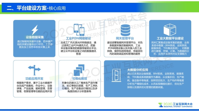 “中建科工根據(jù)'數(shù)字化、信息化、智能化'的設計理念,充分利用工業(yè)PON網(wǎng)絡、智能生產管理系統(tǒng)、工業(yè)大數(shù)據(jù)平臺等先進技術,構建基于云架構的大數(shù)據(jù)分析平臺。通過建立工業(yè)互聯(lián)網(wǎng)大數(shù)據(jù)分析平臺,進行數(shù)據(jù)采集、分析、決策,優(yōu)化提升可制造性和可服務性,形成企業(yè)智能管控閉環(huán),提高生產效率,降低運營成本。”