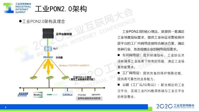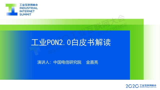 8月31日下午,在2020工業(yè)互聯(lián)網(wǎng)大會(huì)“工業(yè)互聯(lián)網(wǎng)產(chǎn)業(yè)聯(lián)盟成果發(fā)布”活動(dòng)上,《工業(yè)PON2.0白皮書(shū)》正式發(fā)布。中國(guó)電信股份有限公司研究院光接入網(wǎng)絡(luò)研發(fā)技術(shù)總監(jiān)、光學(xué)工程博士金嘉亮對(duì)白皮書(shū)進(jìn)行了解讀。