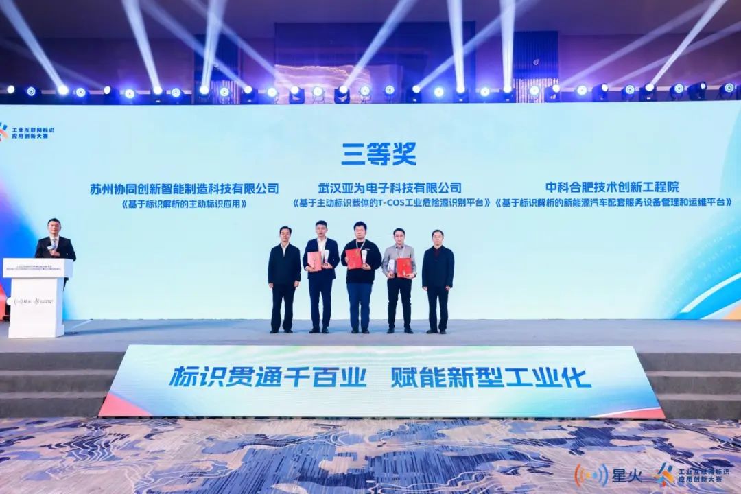 江蘇中天互聯科技有限公司的《基于標識解析的企業節點集成創新應用》從此次大賽的292個項目中脫穎而出,獲得一等獎;網絡通信與安全紫金山實驗室的《基于標識檢索的輪轂生產全流程一體化解決方案》,上海至數企業發展有限公司的《基于工業互聯網主動標識的醫療設備智慧管理平臺》獲此次大賽二等獎;蘇州協同創新智能制造科技有限公司的《基于標識解析的主動標識應用》,武漢亞為電子科技有限公司的《基于主動標識載體的T-Cos工業危險源識別平臺》,中科合肥技術創新工程院的《基于標識解析的新能源汽車配套服務設備管理和運維平臺》獲三等獎。
