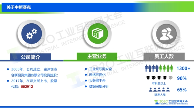 在2020工業互聯網大會“工業互聯網安全”主題論壇上,南京中新賽克科技有限責任公司工業互聯網安全產品總監孫浩發表題為《如何構建企業自身的工業互聯網安全可視化體系》的演講,分享當前工業互聯網發展過程中工業企業、平臺企業如何構建自身的安全可視化體系的一些理念。