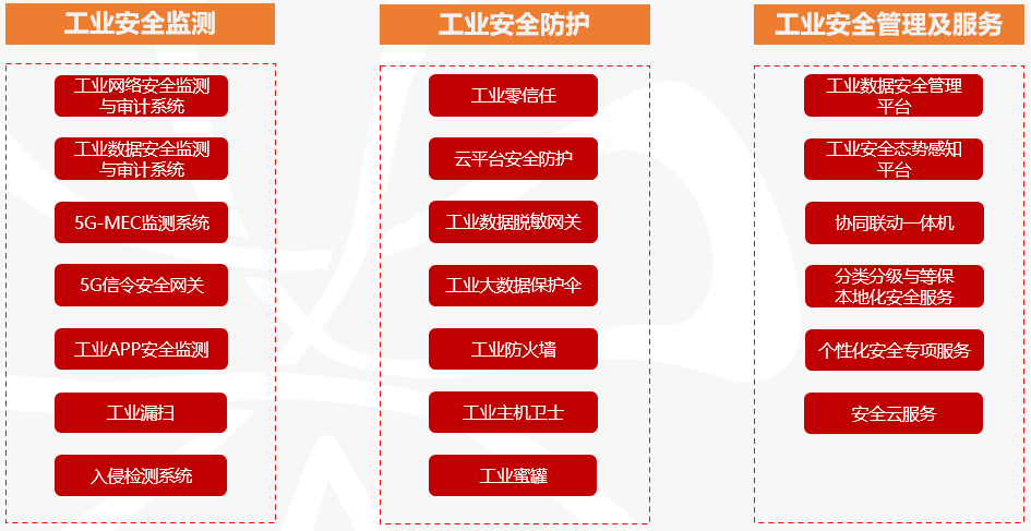 面向多個行業多個企業的MEC安全監測平臺、邊緣計算敏感數據保護技術系統、多業務場景數據脫敏技術工具、面向工業和通信業的網絡及數據安全風險監測發現與預警平臺、工業互聯網網絡安全公共服務平臺、工控安全防護系列產品、企業安全服務等。