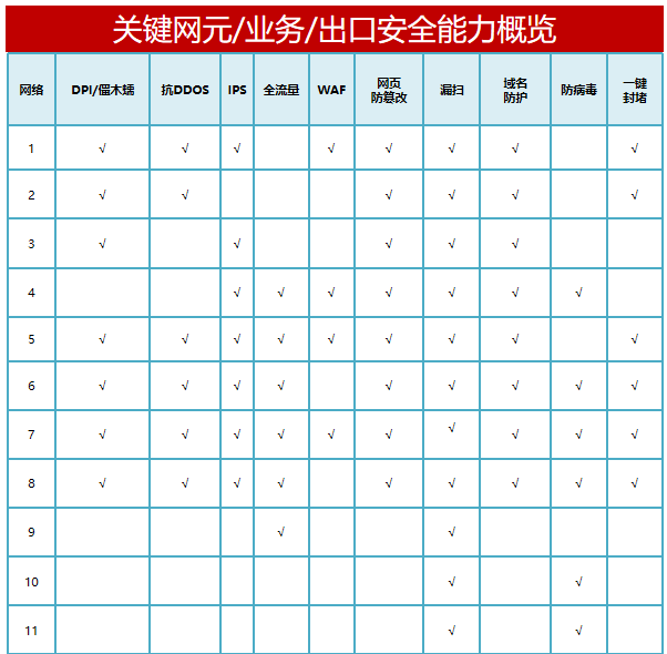 細分終端、網(wǎng)元、業(yè)務(wù)、出口,統(tǒng)籌構(gòu)建網(wǎng)絡(luò)安全“集中+分布”協(xié)同防護能力。依托網(wǎng)絡(luò)安全感知平臺,提升網(wǎng)絡(luò)安全集中監(jiān)控水平。針對重保場景,健全網(wǎng)絡(luò)安全風(fēng)險檢測與處置能力。