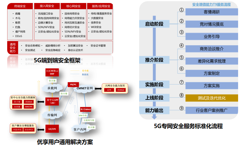 面向5G端到端,提升安全風(fēng)險告警、IP溯源、快速處置能力。面向5G垂直行業(yè)客戶,積極推進安全服務(wù)產(chǎn)品化,形成服務(wù)標準化流程、輸出安全服務(wù)能力清單,提升集約化安全運營中心對新業(yè)務(wù)的保障能力,目前已實現(xiàn)多個方案落地試點。