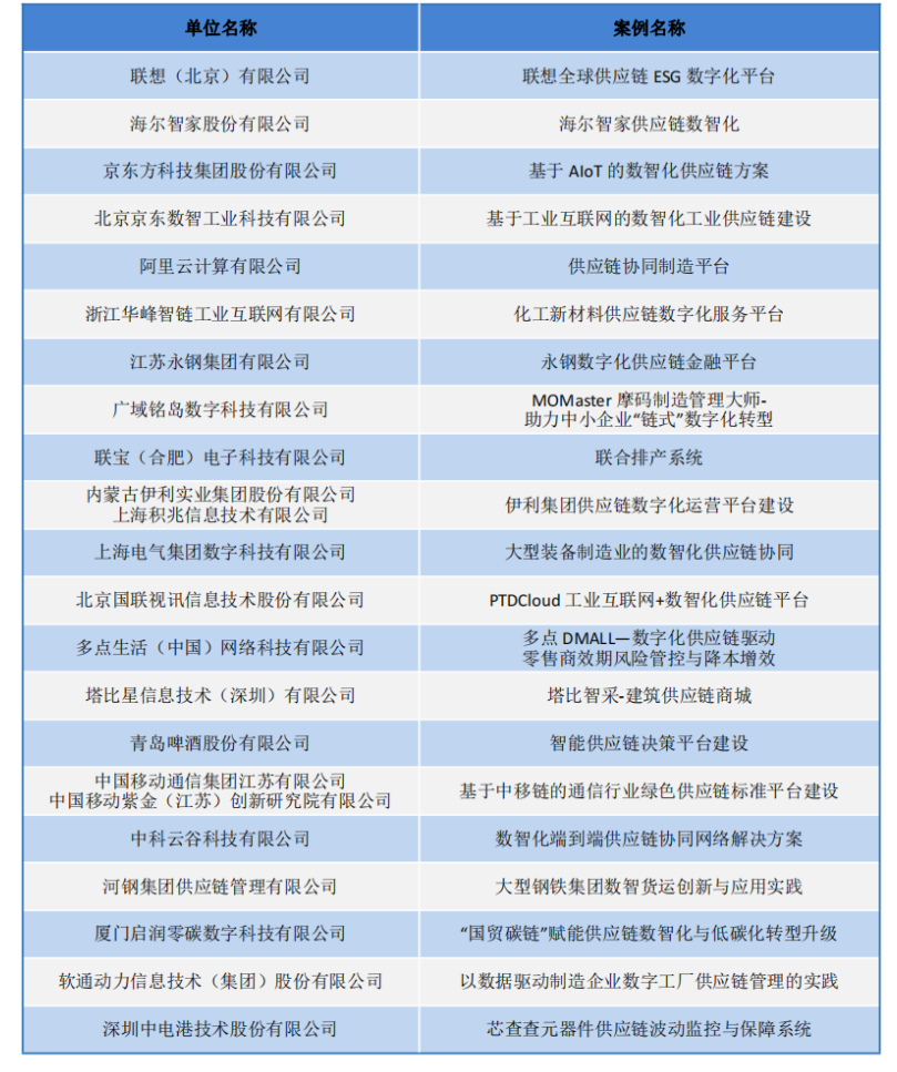 2023年數智化供應鏈案例名單