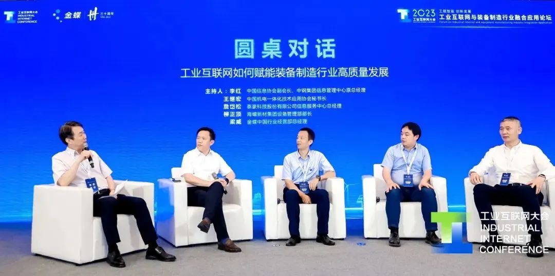 論壇現(xiàn)場(chǎng),主題為《工業(yè)互聯(lián)網(wǎng)如何賦能裝備制造行業(yè)高質(zhì)量發(fā)展》的圓桌對(duì)話成為焦點(diǎn)。中國(guó)信息協(xié)會(huì)副會(huì)長(zhǎng)、中鋼集團(tuán)信息管理中心原總經(jīng)理李紅,中國(guó)機(jī)電一體化技術(shù)應(yīng)用協(xié)會(huì)代理秘書長(zhǎng)王繼宏,海螺新材設(shè)備管理部部長(zhǎng)柳正頂,泰豪公司信息服務(wù)部總經(jīng)理詹岱松,金蝶中國(guó)行業(yè)經(jīng)營(yíng)部總經(jīng)理梁威共商共話,為制造業(yè)數(shù)字化轉(zhuǎn)型方法論及應(yīng)用實(shí)踐提供了前瞻之道。