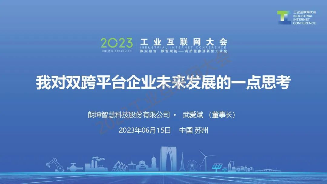 6月15日,在2023工業互聯網大會“工業互聯網最佳實踐高端論壇”上,朗坤智慧科技股份有限公司董事長武愛斌發表了《我對雙跨平臺企業未來發展的一點思考》的主題演講。