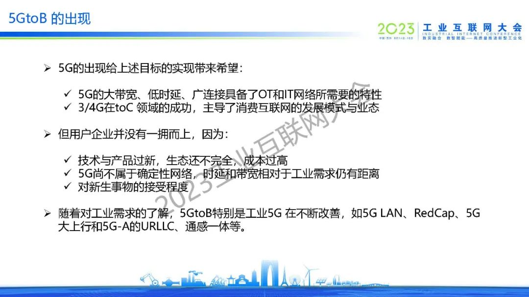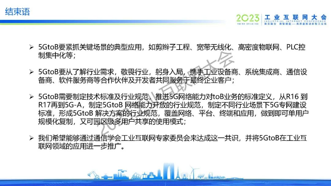 “5GtoB需要制定技術標準及行業規范,推進5G網絡能力對toB業務的標準定義,從R16 到R17再到5G-A,制定5GtoB 網絡能力開放的行業規范,制定不同行業場景下5G專網建設標準,形成5GtoB 解決方案的行業規范,覆蓋網絡、平臺、終端和應用,做到即可單用戶規模化復制,又可園區級多用戶共享的使用模式。”
