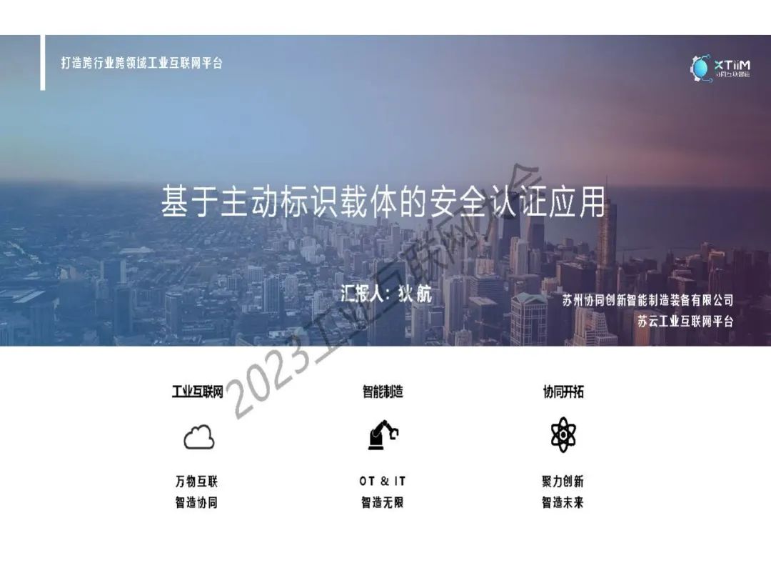 6月14日,在2023工業(yè)互聯(lián)網大會“工業(yè)互聯(lián)網標識創(chuàng)新應用論壇”上,蘇州協(xié)同創(chuàng)新智能制造裝備有限公司副總經理狄航發(fā)表了《基于主動標識載體的安全認證應用》的主題演講。